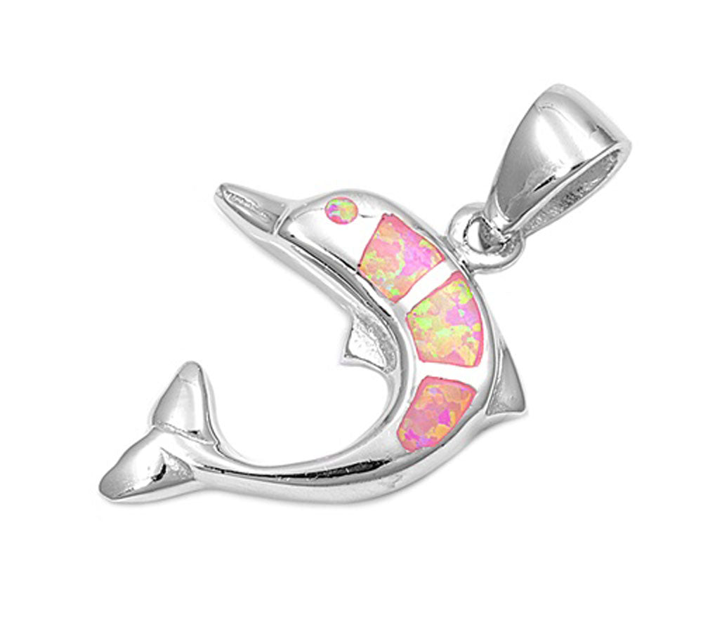 Cute Sparkly Dolphin Pendant Pink Simulated Opal .925 Sterling Silver Charm
