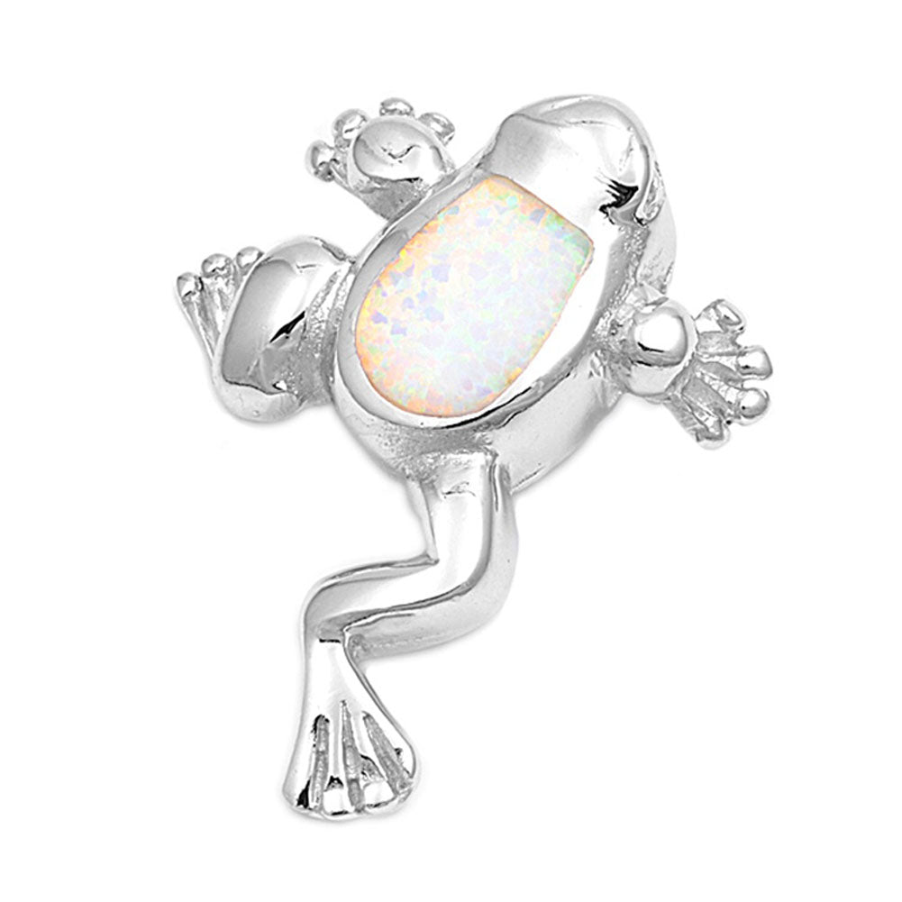 Climbing Tree Frog Pendant White Simulated Opal .925 Sterling Silver Charm