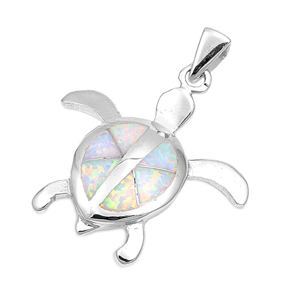 Sterling Silver Triangle Shell Beach Turtle Pendant White Simulated Opal Charm
