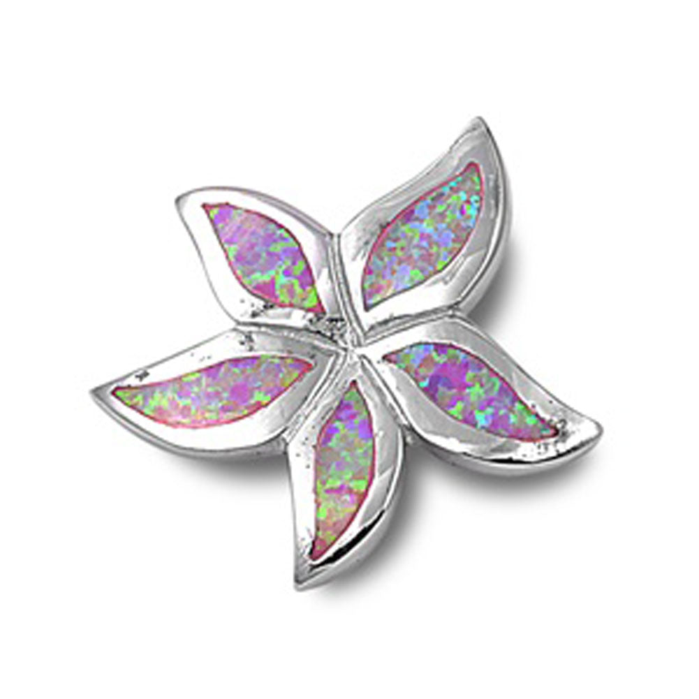 Wispy Flower Blossom Pendant Pink Simulated Opal .925 Sterling Silver Charm