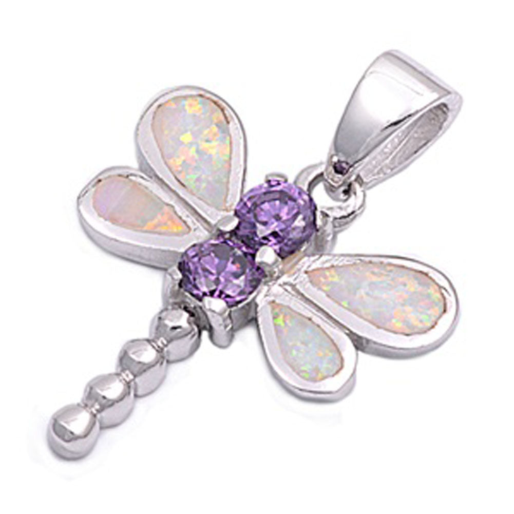 Elegant Bead Dragonfly Pendant Simulated Amethyst .925 Sterling Silver Charm
