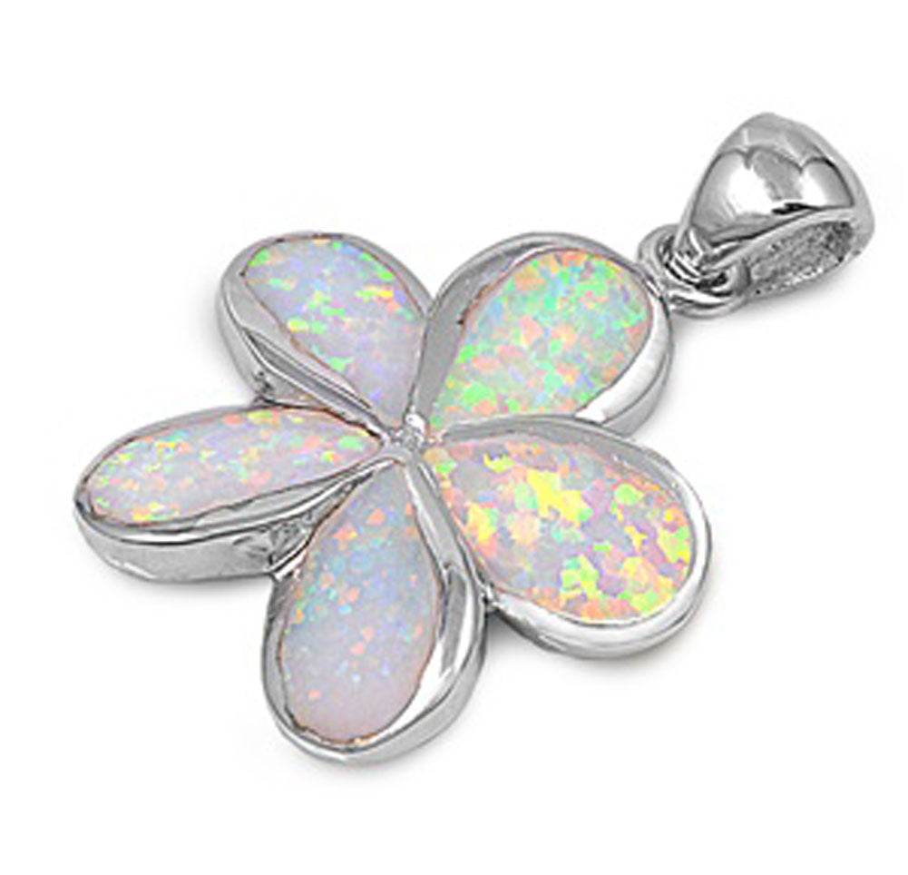 Sterling Silver Teardrop Rounded Starfish Pendant White Simulated Opal Charm