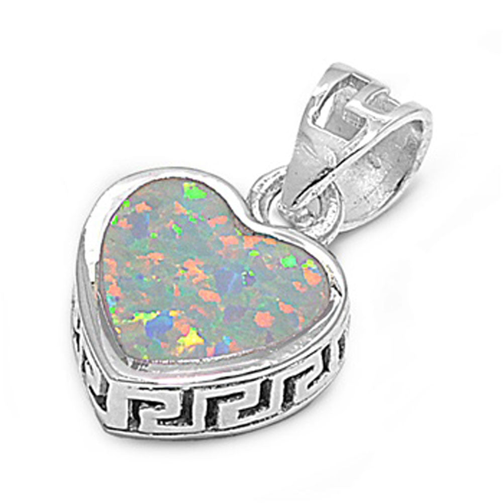 Sparkly Promise Heart Pendant White Simulated Opal .925 Sterling Silver Charm