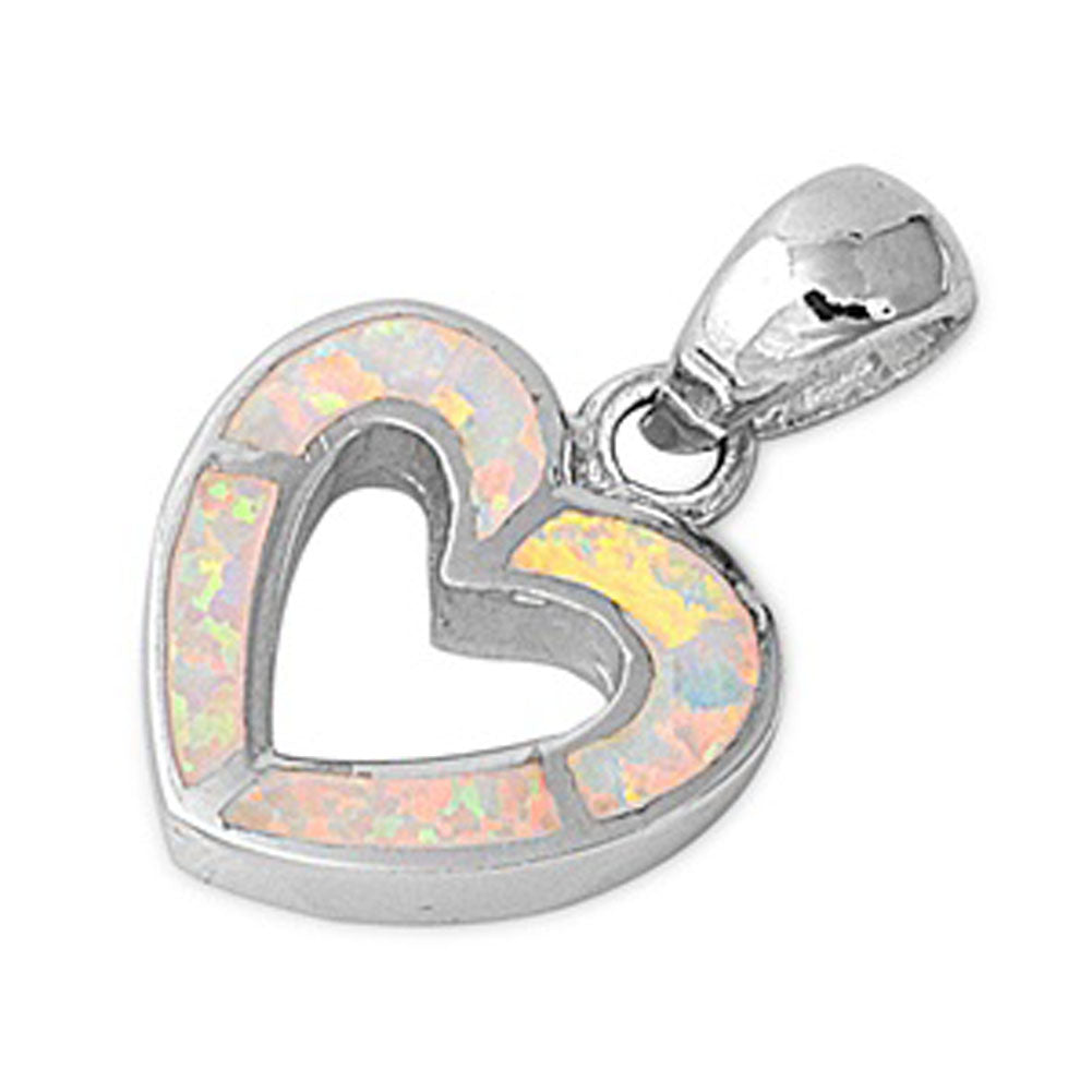 Simple Promise Heart Pendant White Simulated Opal .925 Sterling Silver Charm