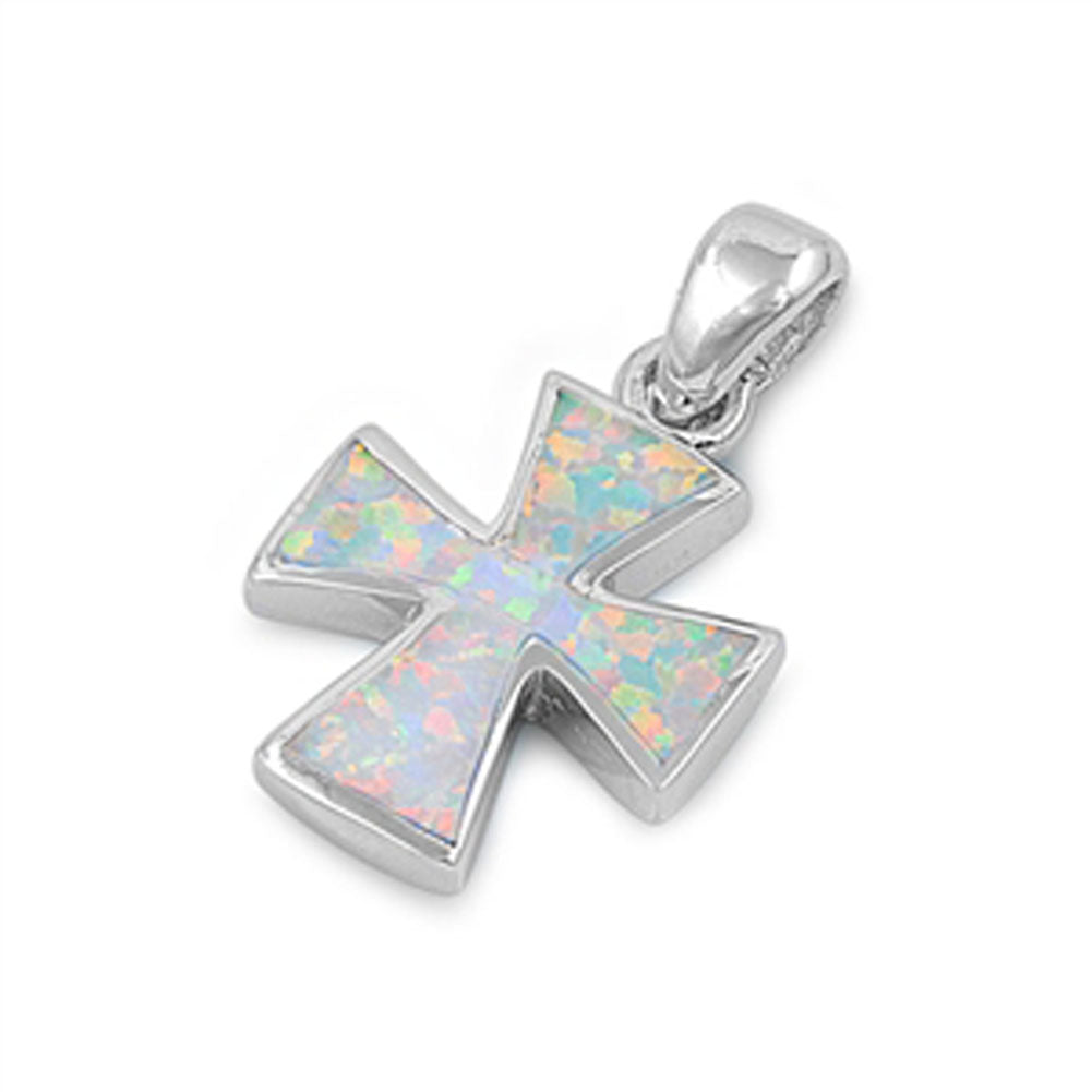 Tapered Biker Cross Pendant White Simulated Opal .925 Sterling Silver Charm