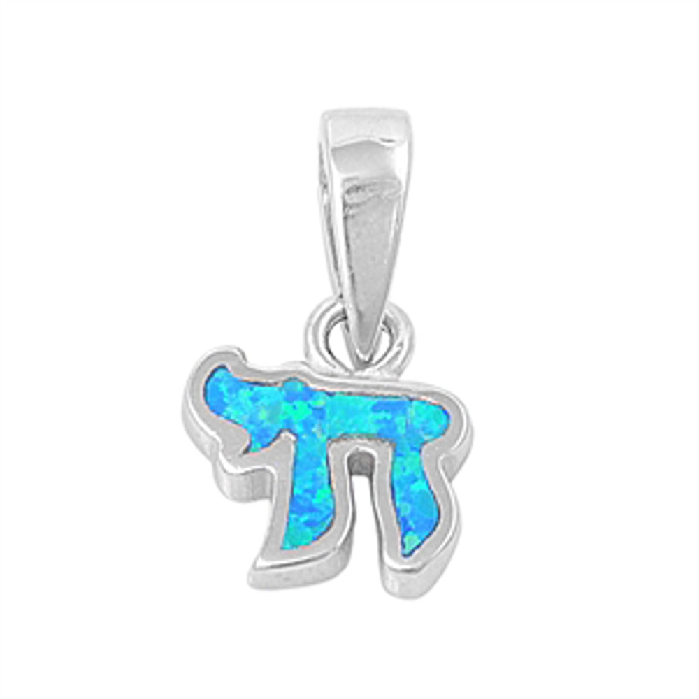 Sterling Silver Blue Synthetic Opal Chai Life Symbol Pendant Simple Charm 925