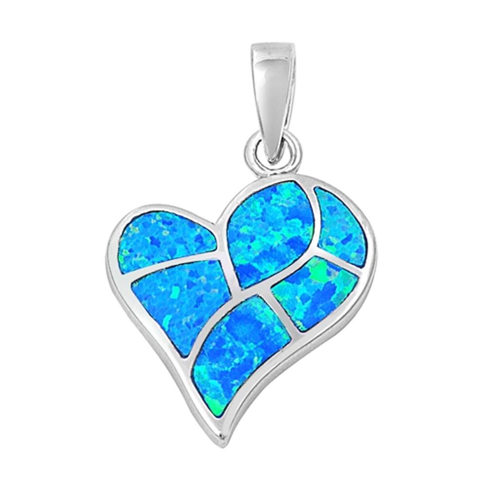 Abstract Artistic Heart Pendant Blue Simulated Opal .925 Sterling Silver Charm