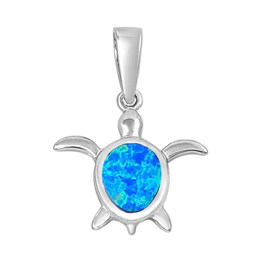Animal Swimming Turtle Pendant Blue Simulated Opal .925 Sterling Silver Charm