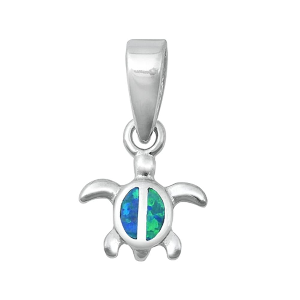 Tropical Turtle Pendant Blue Simulated Opal .925 Sterling Silver Ocean Charm