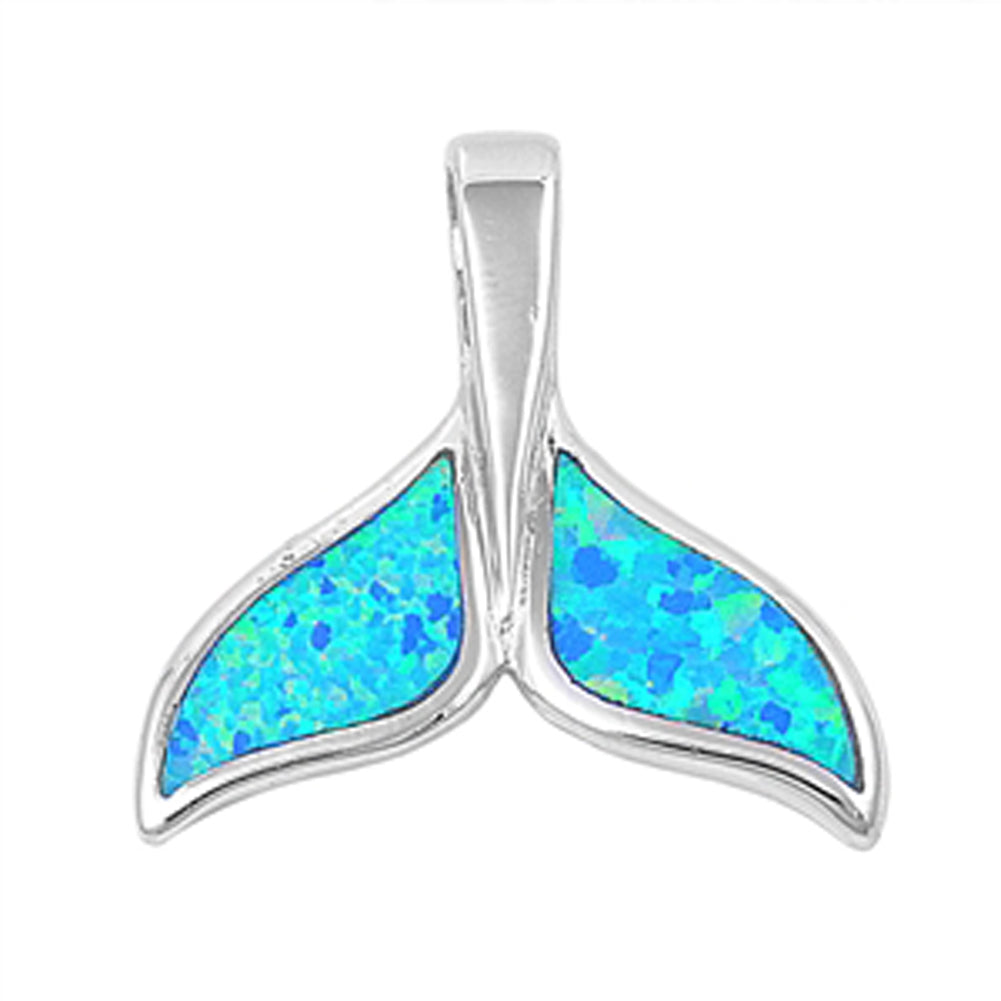 Ocean Simple Whale Tail Pendant Blue Simulated Opal .925 Sterling Silver Charm