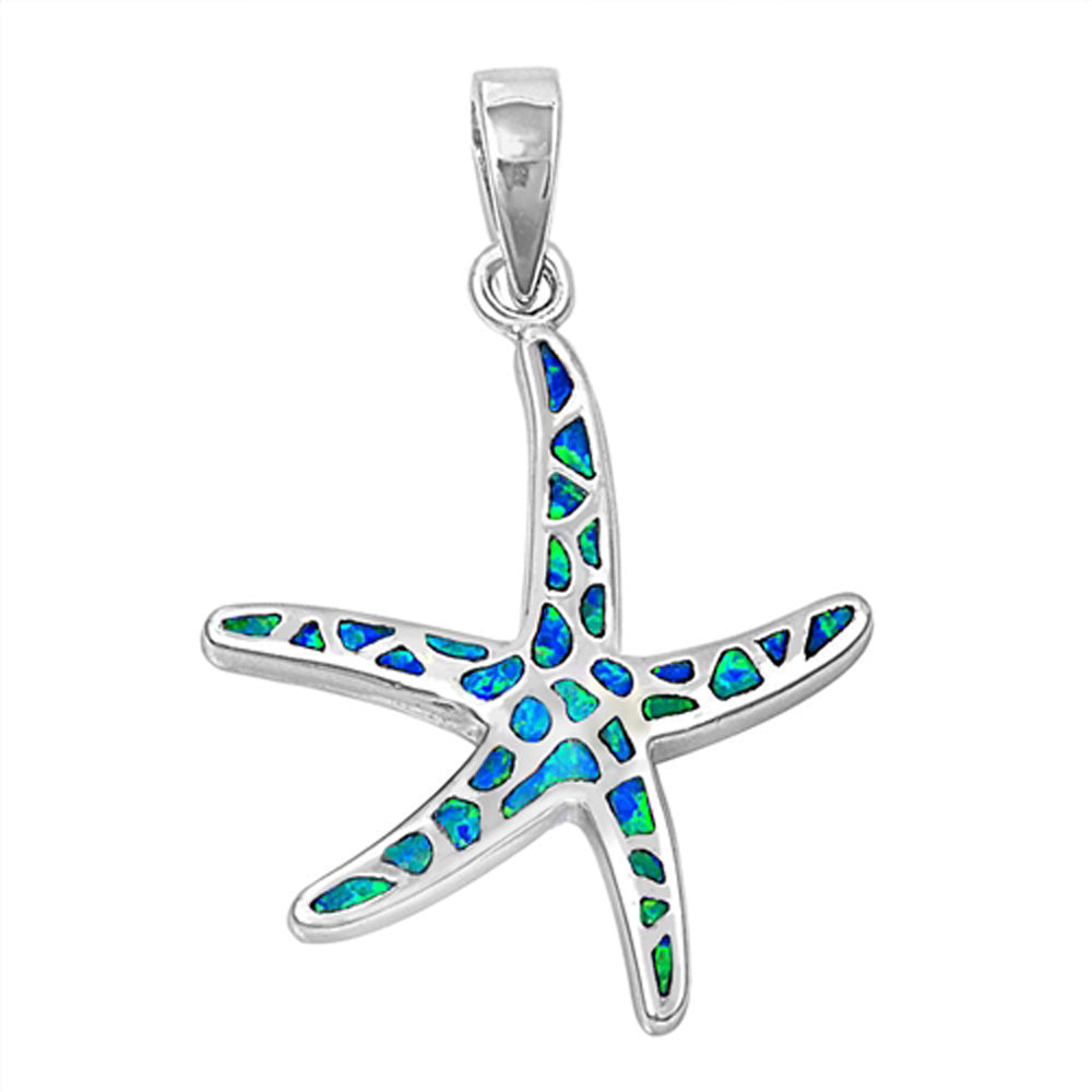 Sterling Silver Blue Synthetic Opal Starfish Pendant Sea Star Beach Charm 925