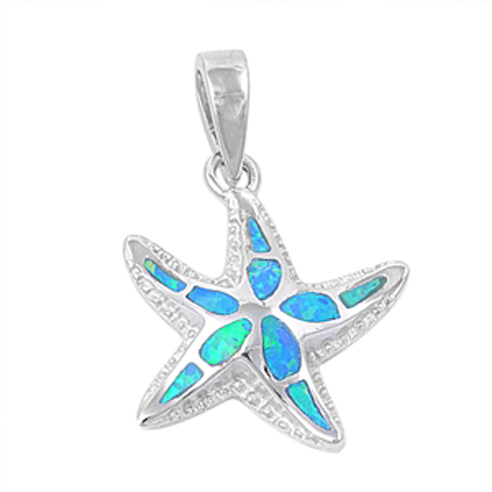 Sterling Silver Blue Synthetic Opal Starfish Pendant Sea Star Ocean Charm 925