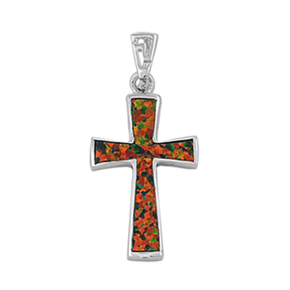 Sterling Silver Simple Traditional Cross Pendant Mystic Simulated Opal Charm
