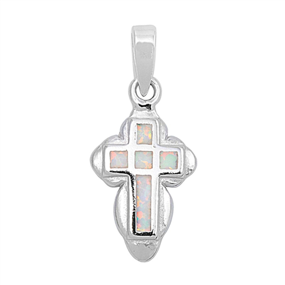 Elegant Round Edge Cross Pendant White Simulated Opal .925 Sterling Silver Charm