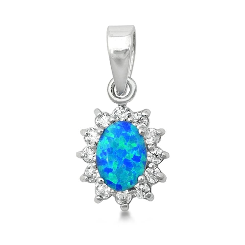 Vintage Sun Burst Pendant Blue Simulated Opal .925 Sterling Silver Oval Charm