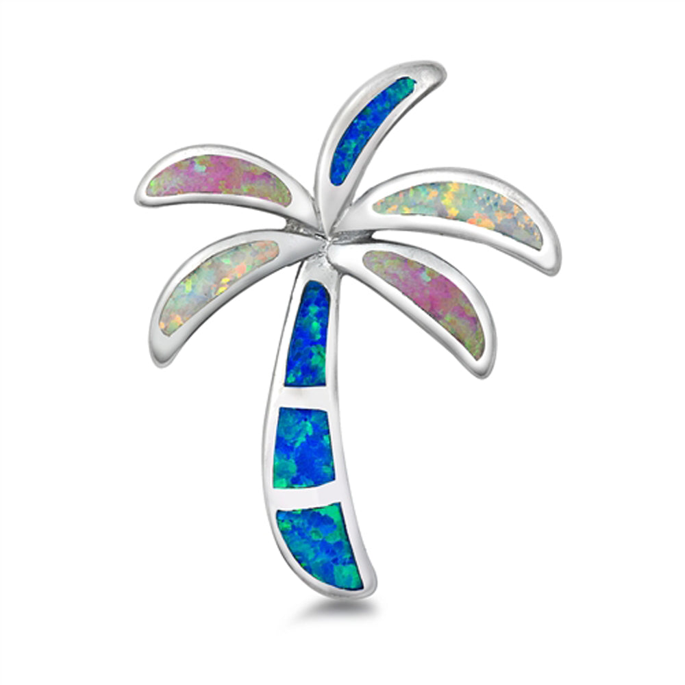 Sterling Silver Blue Synthetic Opal Palm Tree Pendant Multicolor Tropical Charm