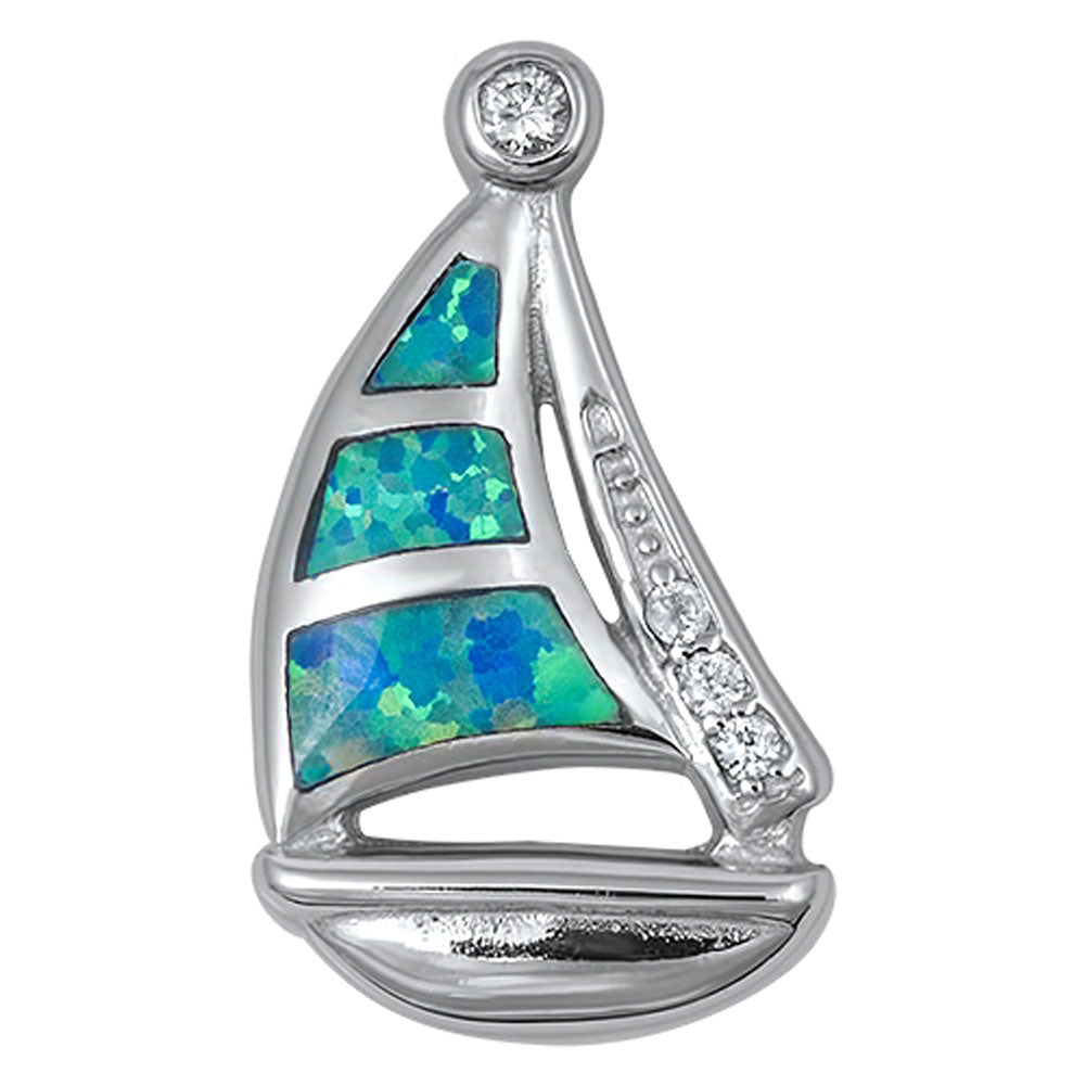Simple Sailboat Pendant Blue Simulated Opal .925 Sterling Silver Boat Sea Charm