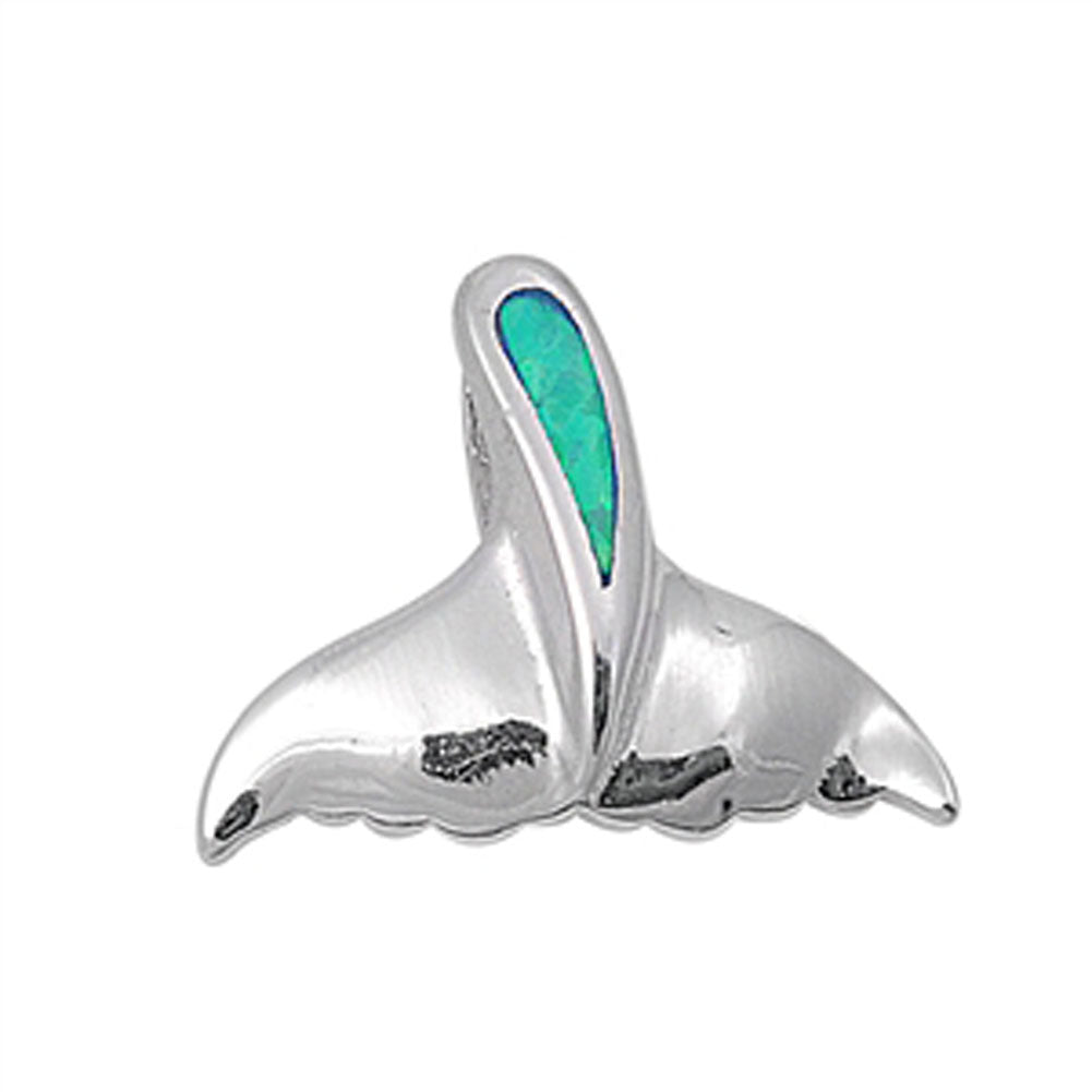 Sterling Silver Animal High Polish Whale Tail Pendant Blue Simulated Opal Charm