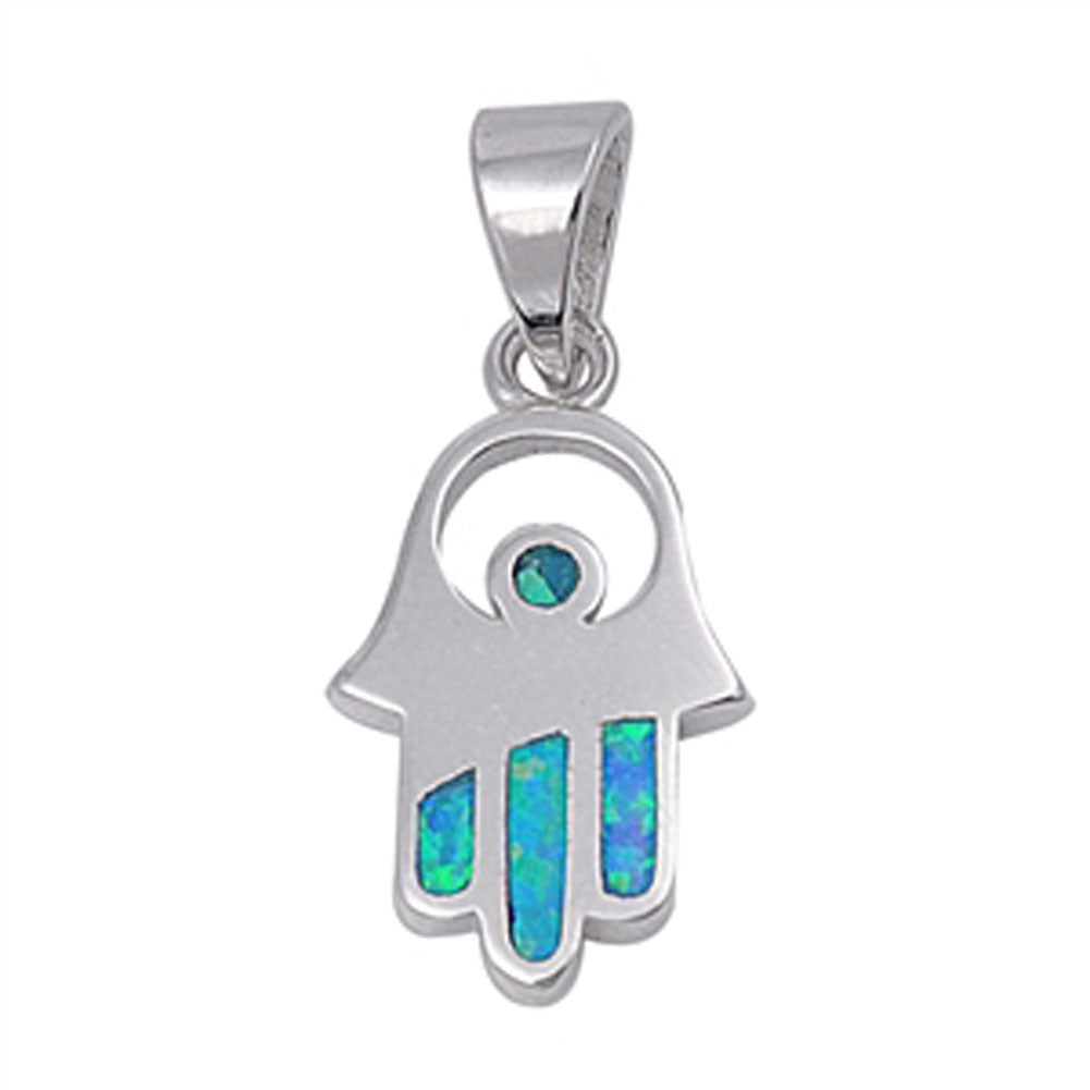 Minimalist Hand of God Pendant Blue Simulated Opal .925 Sterling Silver Charm