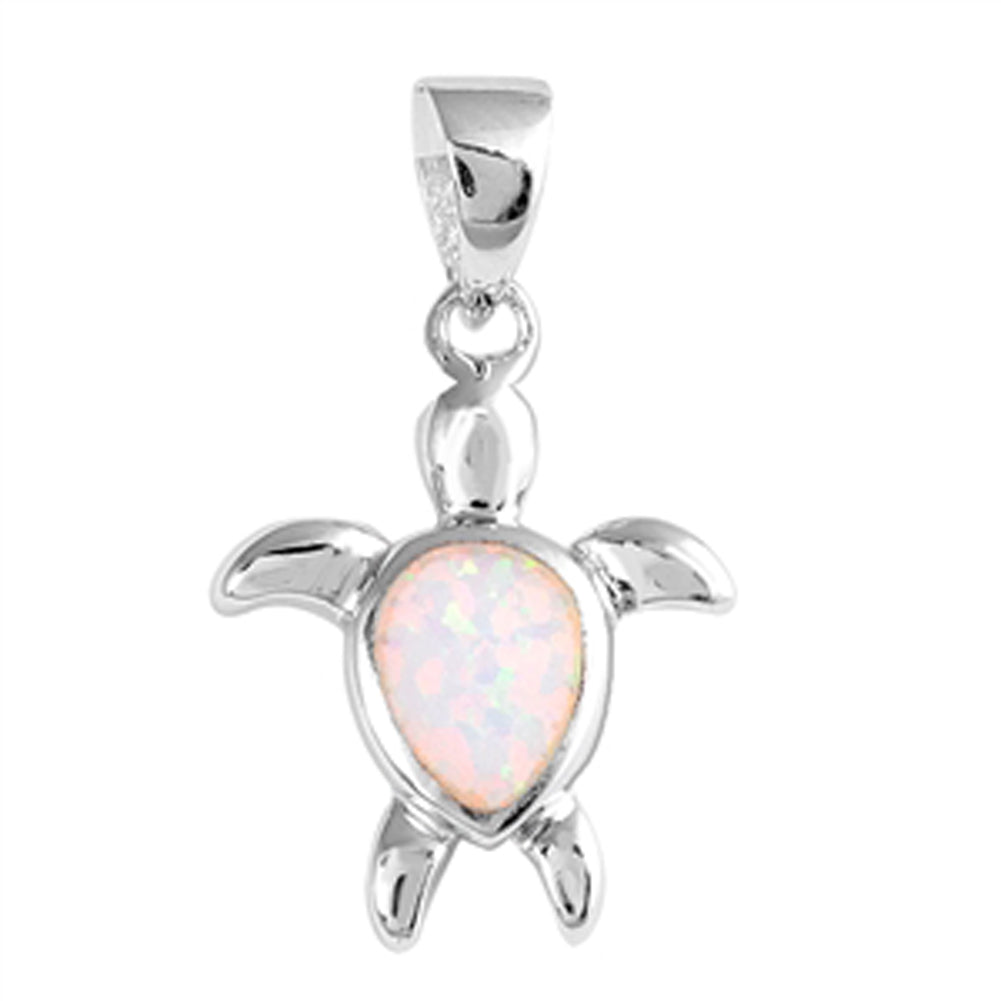 Leatherback Sea Turtle Pendant White Simulated Opal .925 Sterling Silver Charm