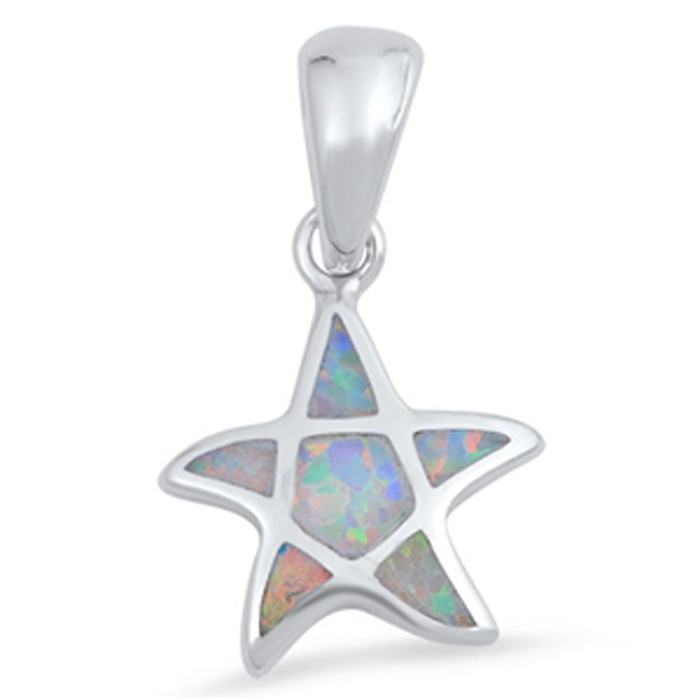 Sterling Silver Astronomy Tiny Mosaic Star Pendant White Simulated Opal Charm