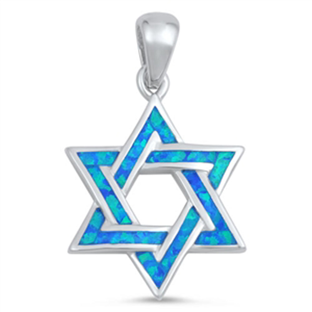 Star of David Pendant Blue Simulated Opal .925 Sterling Silver Religious Charm