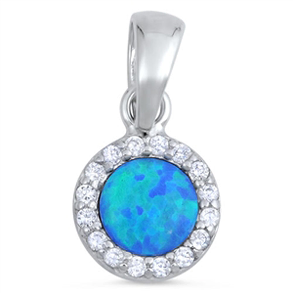 Studded Halo Circle Pendant Blue Simulated Opal .925 Sterling Silver Tiny Charm