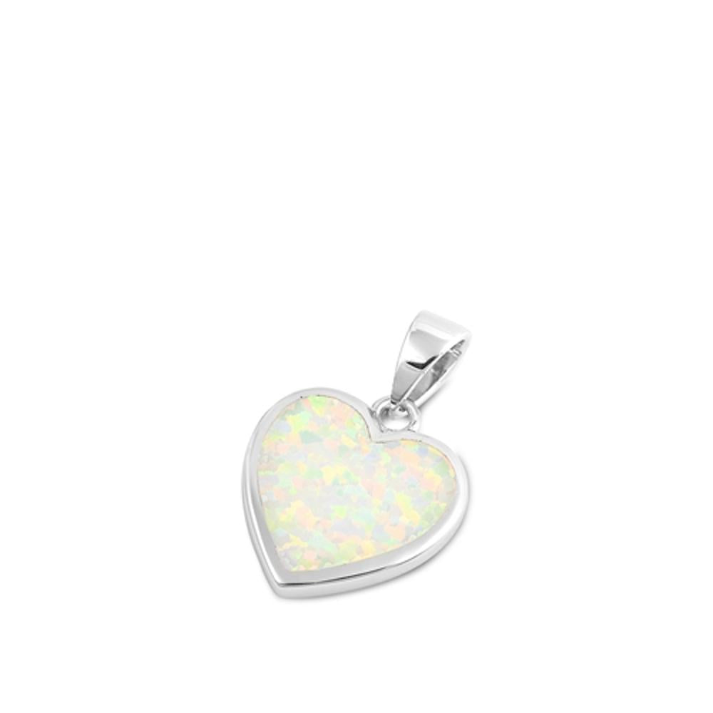 Sterling Silver White Synthetic Opal Classic Heart Pendant Love Promise Charm