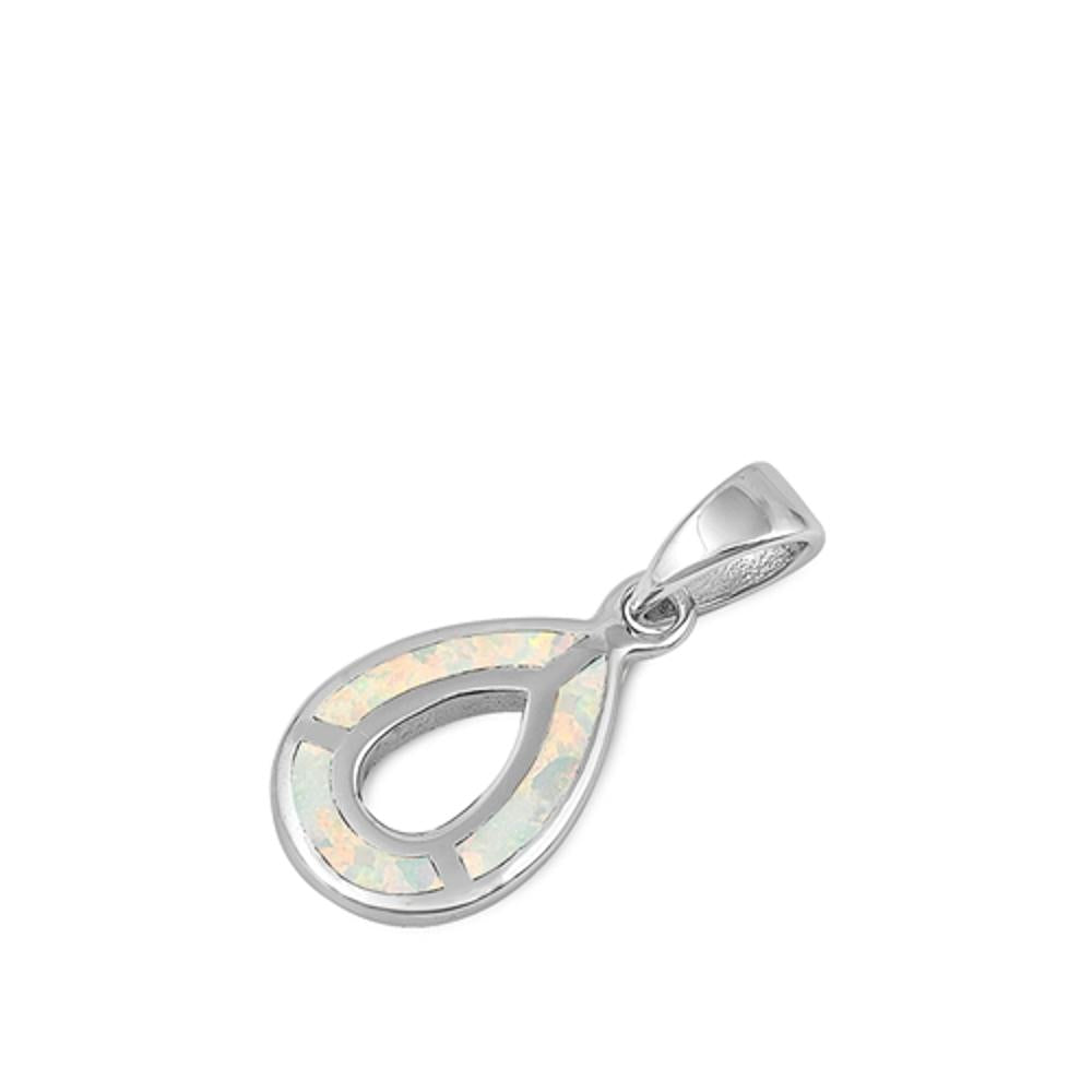 Sterling Silver White Synthetic Opal Teardrop Pendant Mosaic Pear Open Charm 925