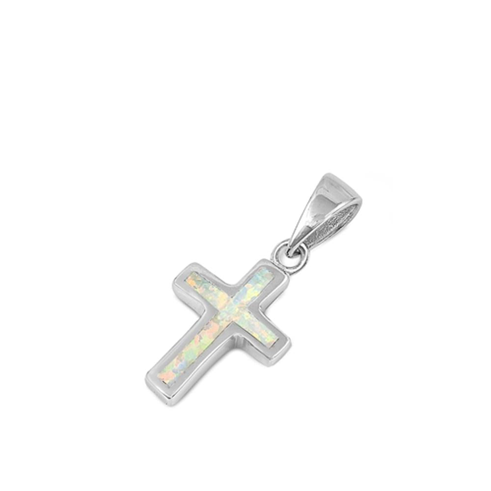 Sterling Silver Beautiful White Synthetic Opal Cross Pendant Christian Charm 925