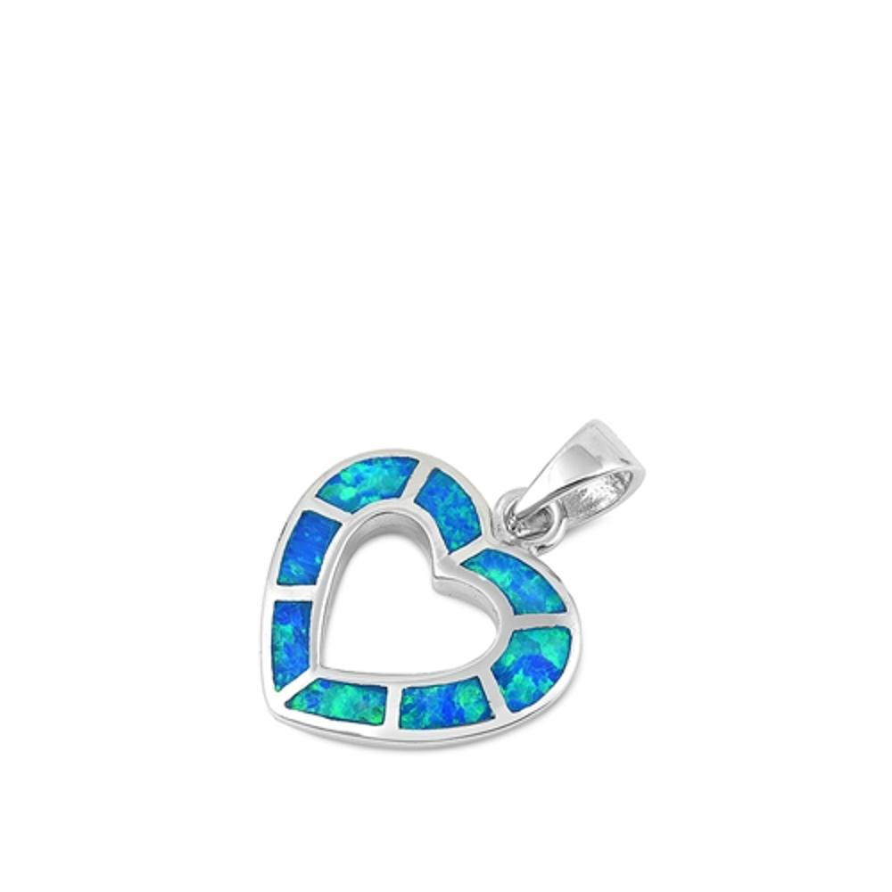 Sterling Silver Blue Synthetic Opal Heart Pendant Love Promise Elegant Charm 925
