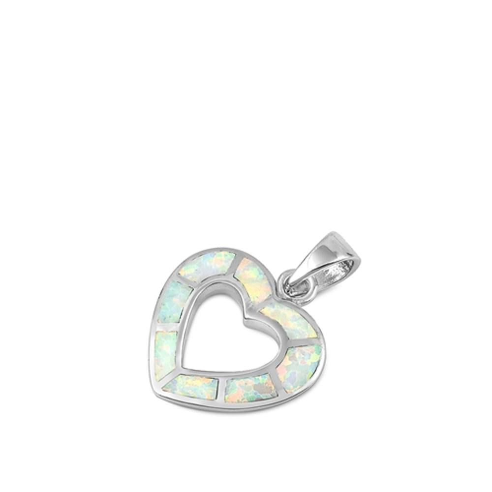 Sterling Silver White Synthetic Opal Heart Pendant Promise Anniversary Charm 925