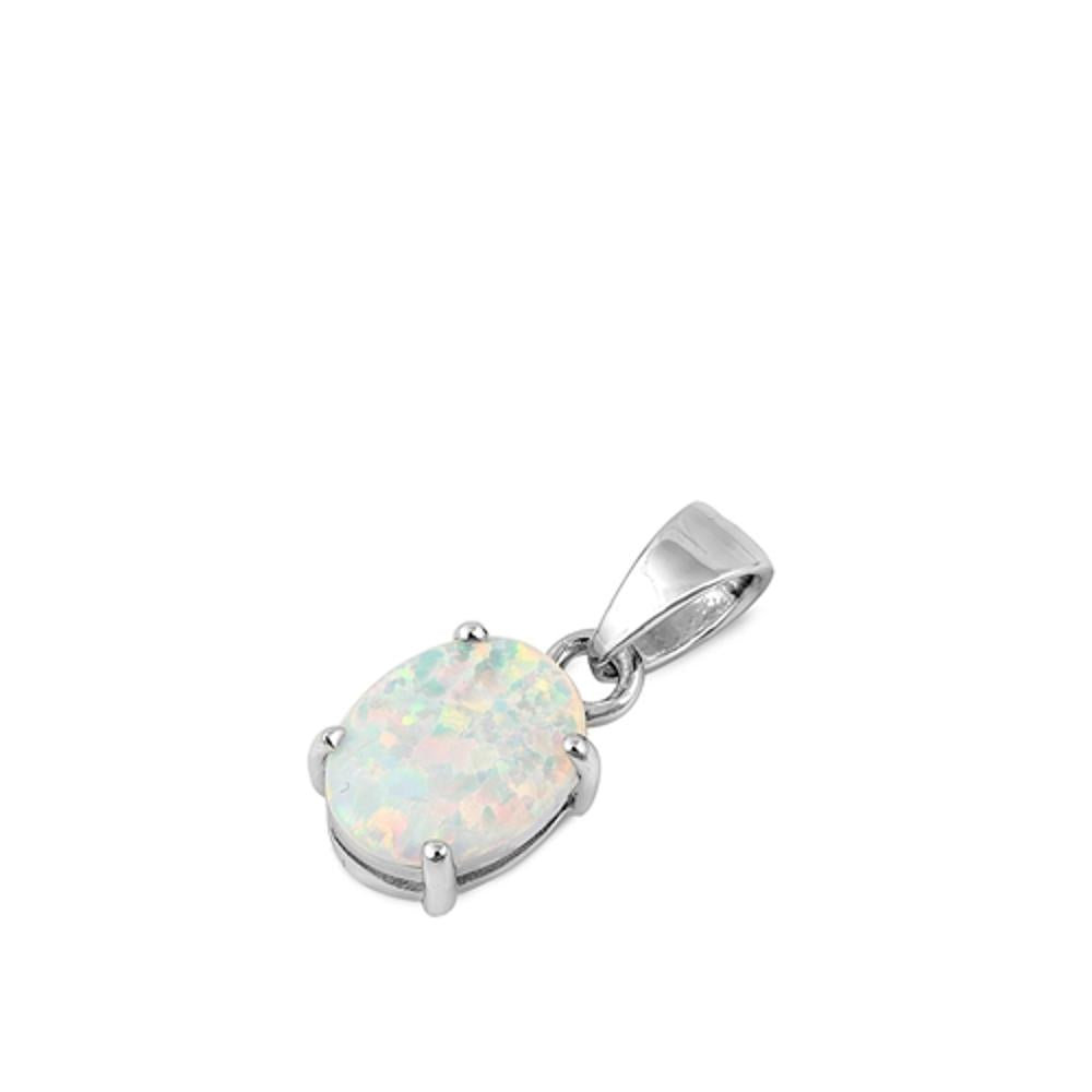 Sterling Silver White Synthetic Opal Pendant Oval Classic Traditional Charm 925