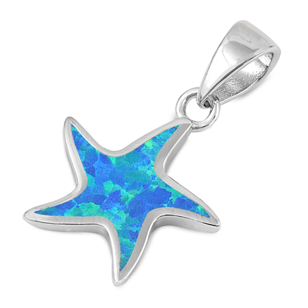 Sterling Silver Blue Synthetic Opal Sea Star Pendant Starfish Ocean Beach Charm