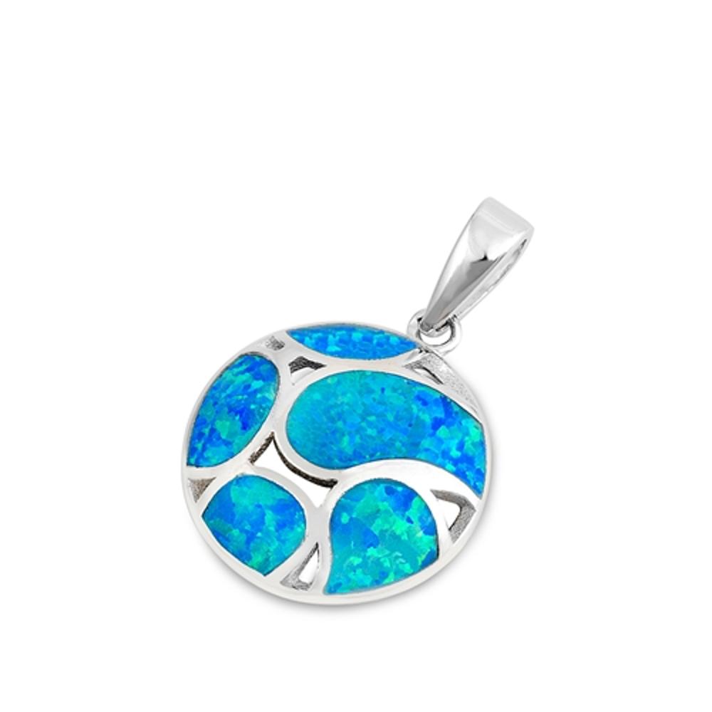 Sterling Silver Mosaic Blue Synthetic Opal Pendant Abstract Round Artistic Charm