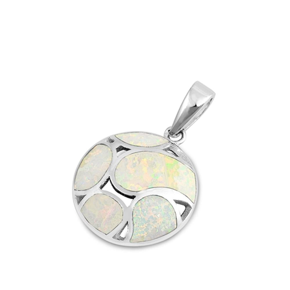 Sterling Silver Modern White Synthetic Opal Pendant Artistic Abstract Charm 925
