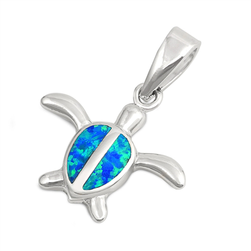 Sterling Silver Blue Synthetic Opal Turtle Pendant Animal Sea Ocean Cute Charm