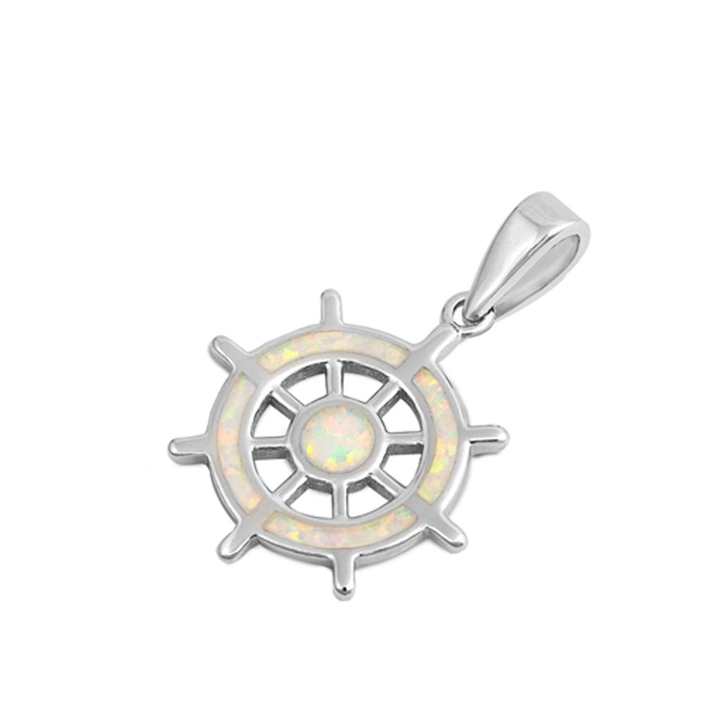 Sterling Silver White Synthetic Opal Captain Wheel Pendant Pirate Ship Charm 925