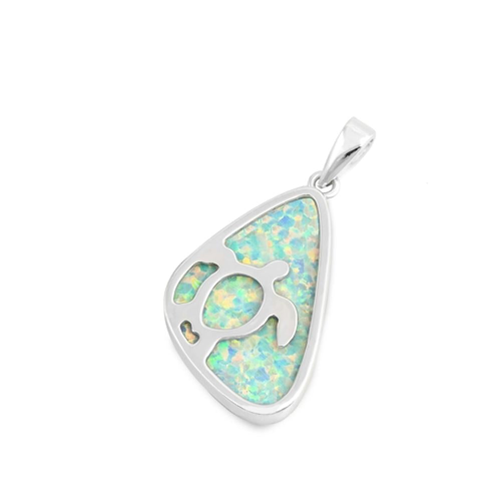 Sterling Silver White Synthetic Opal Turtle Pendant Cutout Beach Charm 925 New