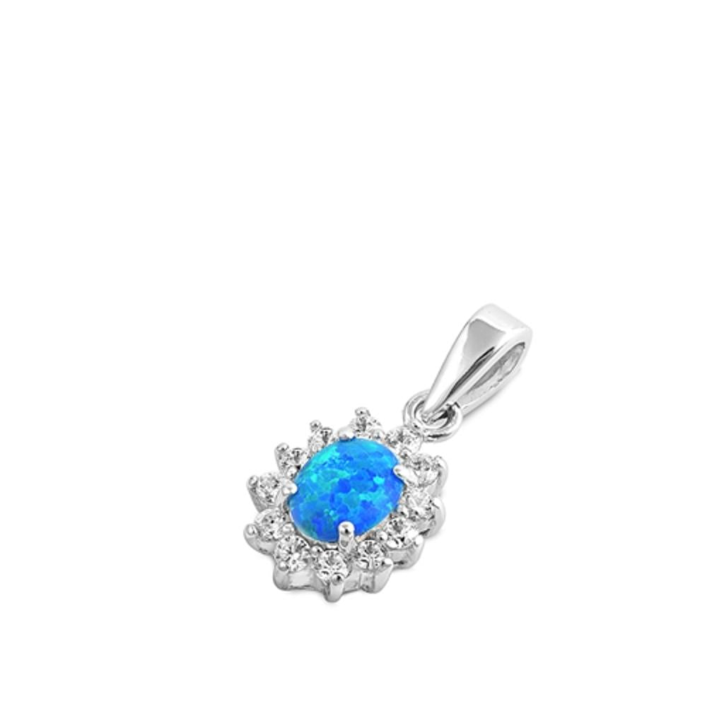 Sterling Silver Blue Synthetic Opal Flower Pendant Vintage Victorian Charm 925