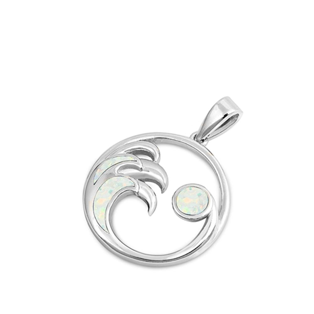 Sterling Silver White Synthetic Opal Ocean Wave Pendant Minimalist Open Charm