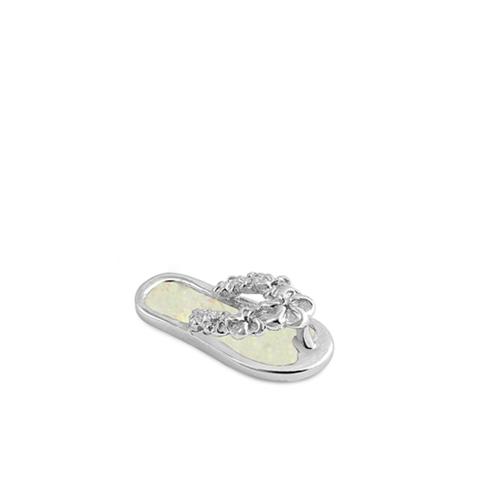 Sterling Silver White Synthetic Opal Flip Flop Pendant Flower Tropical Charm 925