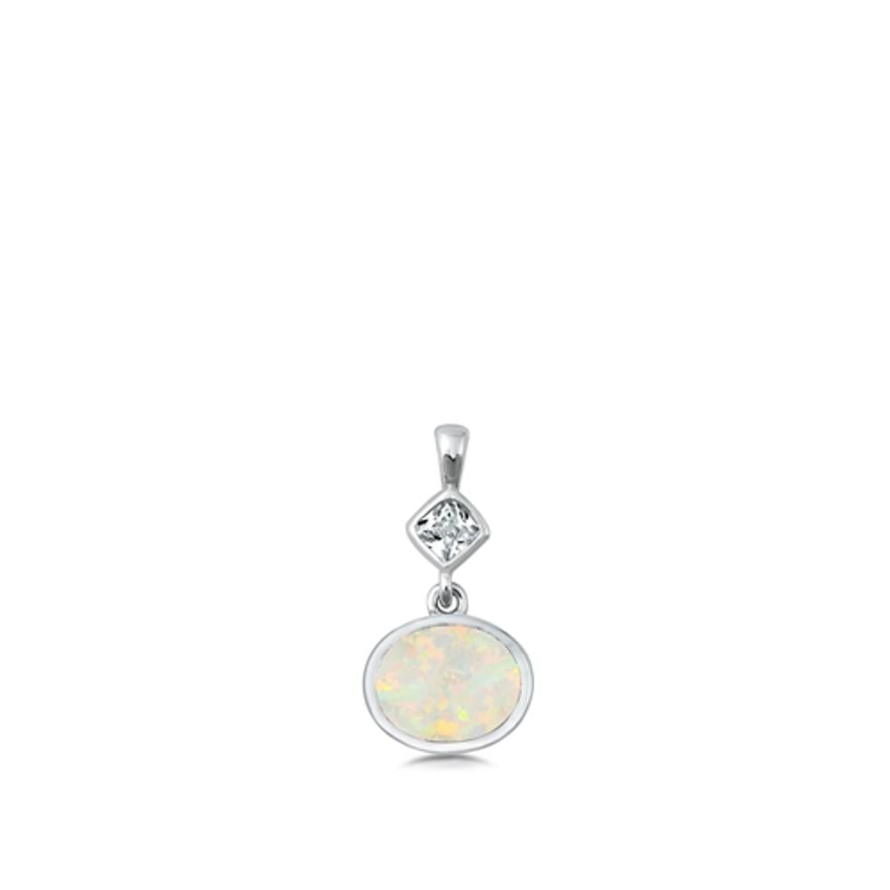 Sterling Silver White Synthetic Opal Dangle Pendant Round Statement Charm 925