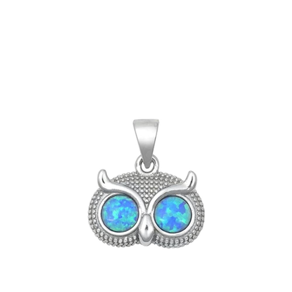 Sterling Silver Blue Synthetic Opal Owl Pendant Bird Animal Cute Wise Charm 925