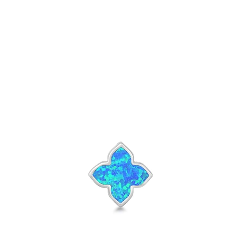 Sterling Silver Blue Synthetic Opal Quatrefoil Pendant Gothic Classic Charm 925