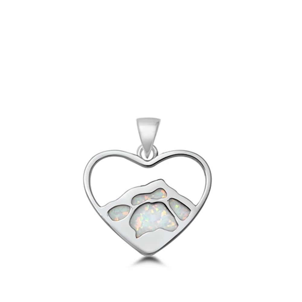 Sterling Silver White Synthetic Opal Mountain Range Pendant Heart Charm 925 New