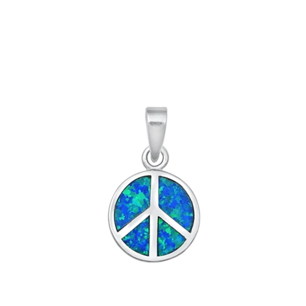 Sterling Silver Blue Synthetic Opal Peace Sign Pendant Classic Hippie Charm 925