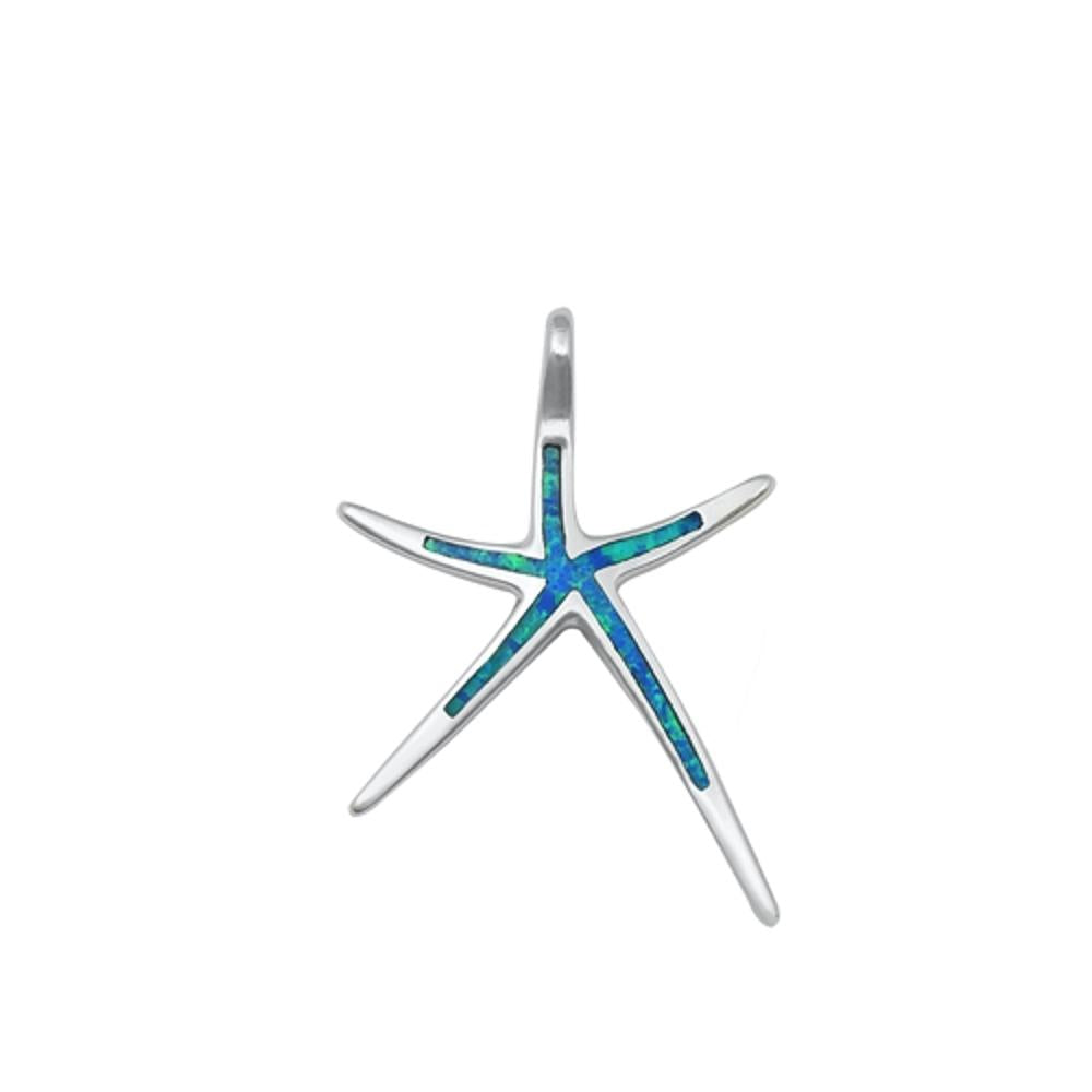 Sterling Silver Blue Synthetic Opal Sea Star Pendant Starfish Swim Charm 925 New