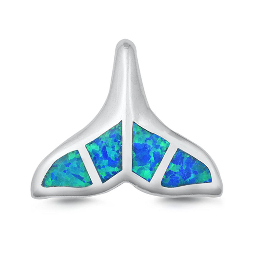 Sterling Silver Blue Synthetic Opal Whale Tail Pendant Dolphin Mermaid Charm 925