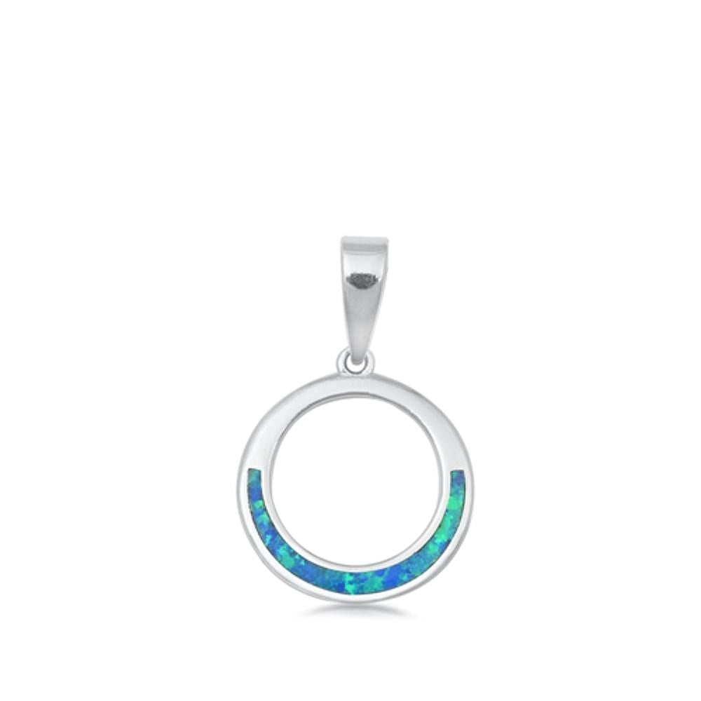 Sterling Silver Blue Synthetic Opal Classic Circle Pendant Charm 925 New